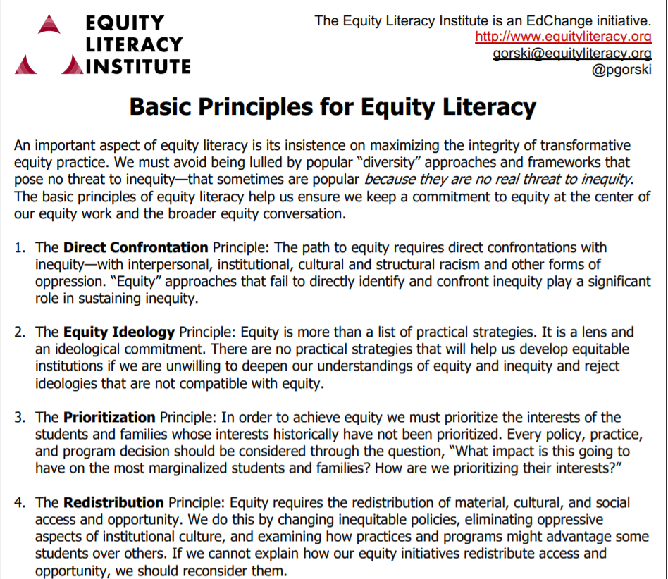 The basic principles of equity literacy help us ensure we keep a commitment to equity at the center of